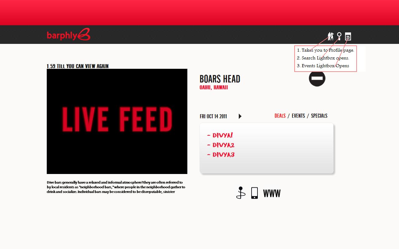 To achieve this, a ‘wireframe’ for design and development was created. Neev handled end-to-end design for the App on iOS and Android platforms as well as the website. A GPS tracking system was designed which would enable the user to locate a certain bar. The live video feeds were in m3u8 format, for which iOS offers native support. In order to enable Android to play from an m3u8 source, a Wowza Server was designed to which the streams would be published through an RTSP port and finally they would be pushed to the Android device. The bump feature was implemented by using the Bump API for Android and iOS.