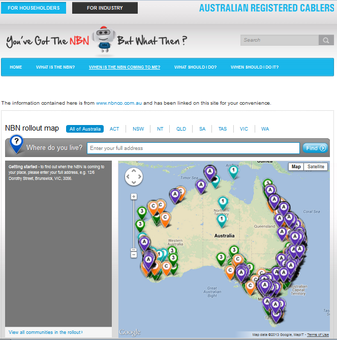 >Neev created a website viewable across desktops, tablets and mobile phones that enabled the client to create awareness about Australia’s National Broadband Network (NBN) and cablers who are authorized to implement NBN and to enable cablers, retailers and service providers to register on the site.